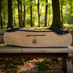 Un sac en liège naturel rigide pour transporter votre tapis de yoga avec style. Fermeture zippée, anses solides, fond renforcé.